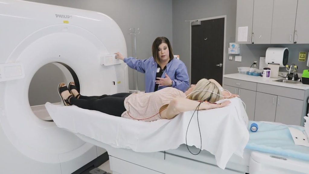 This low-dose CT scan measures calcium buildup in the arteries of the heart (coronary arteries), with a coronary artery calcium (CAC) score to assess long-term cardiovascular risk. The images are timed with the heartbeat to avoid blurriness from the heart’s normal movement and rhythm. Cost is typically $100